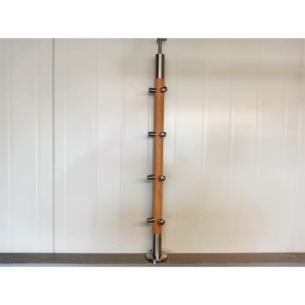 Słupek narożny -stal nierdzewna - drewno 42,4mm - 4 przelotki (montaż płaski)